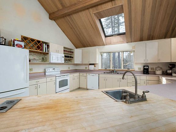 Nestled among the picturesque woodlands of Raymond, this spacious 3 bedroom, 2 bath house is just what you have been seeking! Bask in the sunlight that pours through the cathedral ceiling skylights and brightens the every corner of the large open living room and dining area. You will love cooking in this large, gourmet kitchen with island and prep station. Nestle by the fire on cold nights or overlook the beautiful gardens from your back porch. This home also makes for easy one-floor living with a downstairs bedroom and bathroom. Additional office space in the finished area of the basement, with plenty of room left over for storage. Park your car or work on projects in the massive oversized 2 car attached garage. Crescent lake can be viewed from the home which comes with a private ROW across the road. Life by the lake is ready for you! Schedule a showing today.