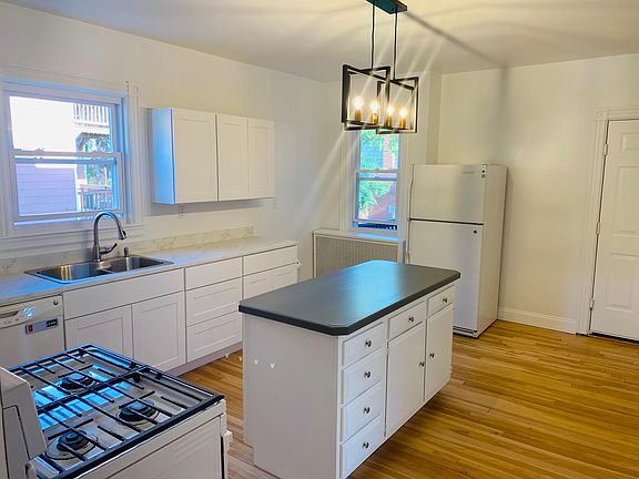 Large, Sunny, beautifully remodeled apartment on a quiet street in popular Deering Center. New kitchen with island, gas stove, and dishwasher. Freshly painted and bright hardwood floors throughout. Fenced in back yard, small private deck, storage, and free laundry. Walk to UNE's Portland campus. One year lease, one month security. Heat/Hot water included. Tenant pays electricity