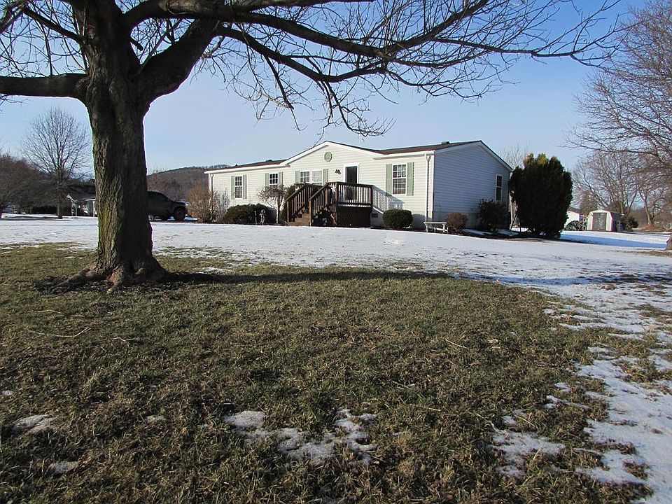 You know the old adage, "location, location, location". Here is a beautiful large open lot, great location!!! On a private dead-end road with a well maintained doublewide home. Perfect amount of space for your family and friends to enjoy inside and outside. Sit out back on your patio/deck and watch the sun set over our beautiful Pennsylvania mountains while you're enjoying the company of your loved ones, whether that be people... or pets! The home has 4 bedrooms and 2 baths, full permanent foundation, and central air for those hot summer days. Nice efficient, well maintained home with a great yard in a quiet neighborhood. What's not to love You won't be disappointed this is a great deal! **CUTE DOGS IN PHOTOS NOT INCLUDED IN SALE** **SEE PRIVATE REMARKS FOR SHOWING INSTRUCTION**