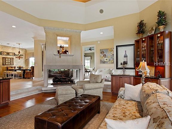 Long lagoon to golf views of Belfair's East 2nd hole from this 4000+ sq foot gem of a home. Dramatic 2 sided fireplace welcomes you upon entry. Master suite downstairs, along with office and powder room, 2 large guest bedrooms upstairs and a 2nd living area. Downstairs screened porch and upstairs open air porch take in the fabulous views. Across from the Learning Center and a short golf cart ride to the Clubhouse, this location is fabulous. Circular drive, on a large half + acre homesite.