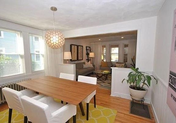 Clean and bright, this lovely 2 bed/1 bath first floor condo in the coveted Hillside neighborhood checks all the boxes. Large, eat-in kitchen features tons of storage, great counter space, gas cooking and stainless-steel appliances. Open dining/living are perfectly situated with lots of natural light and extra room for a home office set up. Two bedrooms, each with good closet space. Ceramic tile full bath. Unit also features hardwood floors, recessed lights, central AC, and extra basement storage. Enclosed front and back porches are awesome bonus spaces. Enjoy your summer nights grilling dinner on the back patio or playing in the fenced yard. Unit comes with 1 garage parking spot + 1 addition driveway spot. Fantastic neighborhood with just a short distance to the Mystic River, Whole Foods, Starbucks, the Condon Shell, and the future MBTA Green Line Station at College Ave.