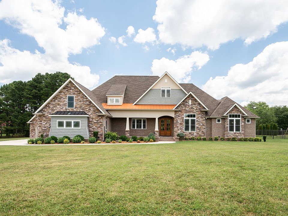 Welcome to this custom-built Craftsman-style home, located on a corner lot just outside Tullahoma's city limits & within 1 mile of a public boat ramp at Tim's Ford Lake. As you step inside, you'll be greeted by soaring ceilings & an open floor plan concept. The home features tile throughout, as well as neutral paint. The entry foyer leads you to the great room, where the LR, DR, and eat-in kitchen seamlessly blend together. The kitchen is a chef's dream, boasting 2 islands & custom handmade cabinets by local craftsman Richard Bewley, complemented by both granite & concrete countertops. The split BR floor plan ensures privacy for the primary suite, which is a true retreat. It features a trey ceiling, private access to one of the covered backyard patios, his & hers walk-in closets, & a luxurious bathroom w/dual vanities, a large walk-in shower, & a private toilet area. All guest BRs are equipped w/ceiling fans & walk-in closets, providing comfort and convenience for family & visitors