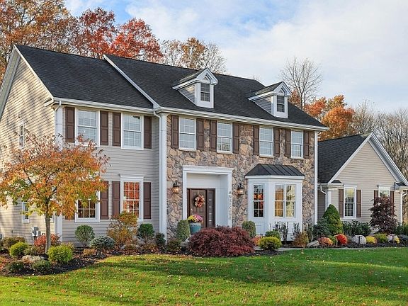Welcome to this beautifully maintained & updated 4-bed, 3.5-bath colonial, situated in one of Hanover Twp's most desirable neighborhoods! Step into the impressive two-story foyer, where cathedral ceilings & exquisite custom molding set a tone of timeless elegance carried throughout the home.The heart of the home is the stunning, fully renovated chef's kitchen featuring an oversized quartz-topped island, Wolf appliances, a wine refrigerator, and abundant counter space ideal for both everyday living and entertaining. Gleaming hardwood floors flow seamlessly through the inviting family room w a cozy gas fireplace, the formal dining room, den, & office offering both comfort and versatility.Upstairs, every bedroom enjoys direct access to a full bath, including a spacious primary suite w a lovely master bath & generous closets. A convenient second-floor laundry room enhances the home's smart, functional design.Outside, the curb appeal is just as impressive. Professional landscaping surrounds the home, complemented by durable Hardie Plank siding, elegant paver walkways, exterior lighting, & a beautiful Trex deck perfect for entertaining or relaxing outdoors. All of this on a quiet, & desirable cul-de-sac that offers both privacy & community charm.This home truly checks every box beautifully updated, meticulously cared for, & located close to top-rated schools, shopping, dining, and major commuting routes, it offers the perfect blend of luxury, comfort, and convenience.