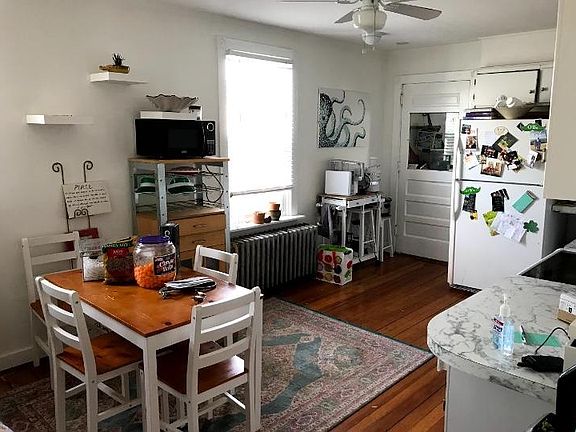WATER included in rent with $100/month cap. Fantastic 2-bed, 1-bath apartment situated in the Yachting Village between Spring and Thames Street. Keep your bike and surf boards in the mud room, enjoy cooking in the large eat-in kitchen (with lots of countertop and storage space) or relax in the living room. Just a stone's throw from Thames, you'll love living in this great apartment. Rent includes Water, all other utilities (including efficient gas heat) are tenant responsibility. Coin-op laundry in basement, on-street parking. Landlord pays water. Tenant pays gas heat, electric, internet/cable