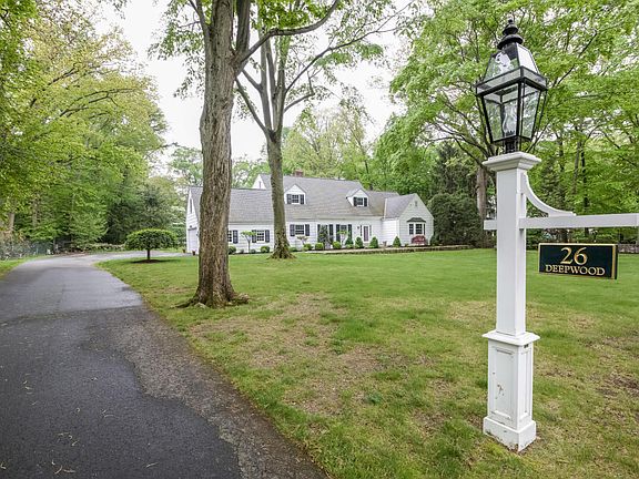 26 Deepwood Road is an elegant and classic colonial on a sought after street in Darien. There are five bedrooms and four and one half baths on an open,flat acre of land with a lovely pool. The first floor has 10 foot ceilings, an oversized dining room, family room and a beautiful, custom built sunroom. The light filled sunroom opens out onto a flagstone patio and the grounds, with stone walls and the pool.There is a spacious eat in kitchen with an eight burner professional range. A large ensuite bedroom is also located on the first floor with a brand new bathroom built in 2016.Upstairs there are four more ensuite bedrooms with updated baths. Walk to Middlesex Middle School and Noroton Metro North station.New windows, furnace,oil tanks and more. This home has been lovingly maintained.by the homeowner for nearly 30 years, New furnace,basement system,windows and much more.
