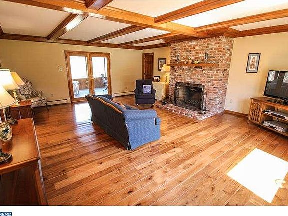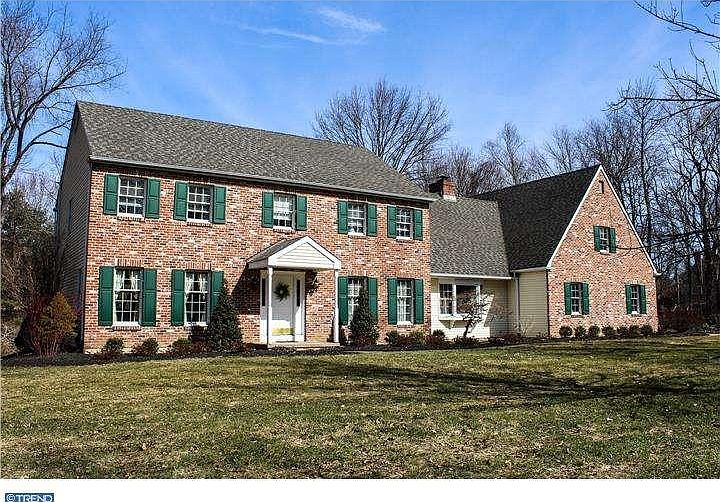 Very Spacious and freshly painted 5 bedroom brick front colonial home on a private tree lined lot close enough to the Boro to walk or bike to town. This well built home boasts beautiful hardwoods on most of the first floor. Extra large formal living and dining rooms flow from the entryway to the kitchen. Enjoy entertaining in the bright and open kitchen with updated cabinetry, corian counters, tile backsplash and flooring as well as stainless appliances. The large but cozy family room has a beautiful brick front fireplace, rustic ceiling beams and wide plank cherry floors which flows from the kitchen and opens to a generous-sized screen porch overlooking wildlife in the back yard. The upstairs master bedroom has a walk-in closet and updated bathroom with oversized tiled shower and frameless glass enclosure. Four additional bedrooms allow plenty of room for a large family to spread out with lots of privacy. The fifth bedroom added over the garage is private for weekend visitors or college students home on weekends. A large laundry area is conveniently located off the fifth bedroom on the second floor. The finished basement has brand new carpet and plenty of space for a pool table, ping-pong table and additional TV room, play room and/or office. Garage is oversized with a bump-out area for additional storage. New landscaping in the front of the house and new oil tank in basement. Lots to see, come take a look!