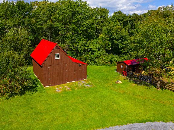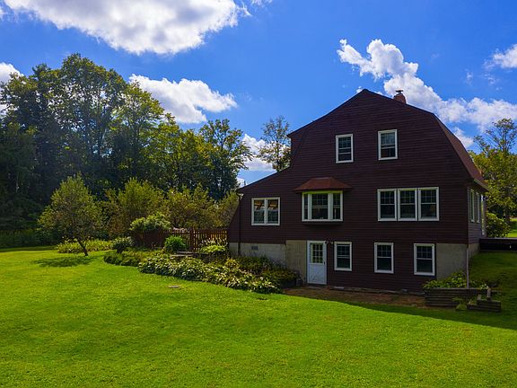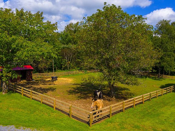 Delightful mini farm on 10 acres next to a quiet country road! 3 Bedrooms and 2 bathrooms with master suite on the first floor. Open floor plan with a bright and airy family room, dining area and kitchen. Spacious sun room provides an abundance of passive solar sunlight. Out buildings include a 26 X 30 RV barn, run in shed for two horses and a detached 2 car garage. Apple trees, garden areas and a small attached green house space are here encouraging gardening. Trails wander thru the woods and a small creek has a bridge making it easier to enjoy the entire property.