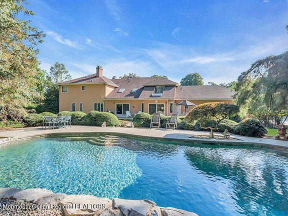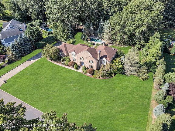 Opportunity knocks! Exquisite custom-built 6 BR, 5.5 Bath dream home w/ IN GROUND POOL on wooded property with impressive list of amenities.Features include NEW ROOF, soaring Two story foyer with circular stairs and marble floor, Huge Room sizes, Great Room with marble fireplace and wet bar. First Floor Guest Suite perfect for Mom, Sliders leading to custom deck overlooking private backyard w/ In Ground heated, Stone Pool, Library with fireplace, 2nd floor balcony overlooks great room, Primary suite with elegant Marble Jacuzzi Bath, mother-daughter option. Truly an outstanding home offering luxury living that embodies functionality & style. Conveniently located to major transportation and Shopping, plus the excellent Holmdel School system. The perfect Holmdel choice for you, the next Owner