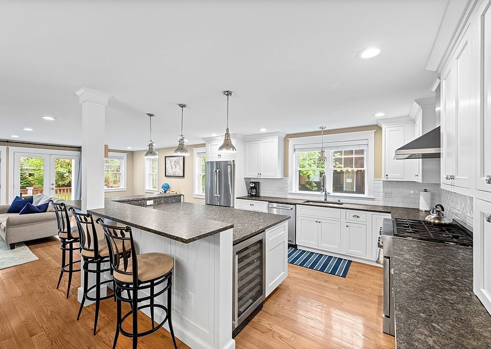 Set in a desirable Prospect Hill neighborhood this stunning 5-bedroom, 5-bath Contemporized Cape blends timeless charm with modern upgrades. The classic brick front opens to a spacious, fully renovated and expanded interior (2018) featuring 4,325 sq ft of living space. The chef’s kitchen anchors the main level, along with a first-floor bedroom and bath. Upstairs, the luxurious primary suite is joined by two additional bedrooms, each with its own bath. The third floor offers an oversized bedroom with full bath—perfect for guests or a home office. Enjoy bonus living space in the "walk-out" lower level featuring a play room, workshop and a beautifully built out mudroom with direct access to the 2-car garage. Conveniently located near all three schools, the MBTA 76 bus, "Old Res", Lincoln Park, Hayden Recreation Center, town recreation facilities, commuter routes and more!