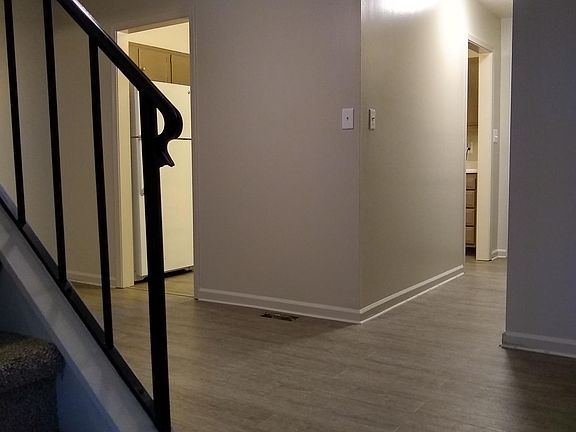Two level condo has been updated with new hardwood flooring in kitchen, hallway, lower level half bath and utility room. New carpet through rest of condo. Updated bathrooms. Ample closet space with a huge walk-in closet in each bedroom. A block from Carmel Middle School. First and last months rent plus security deposit paid prior to move in