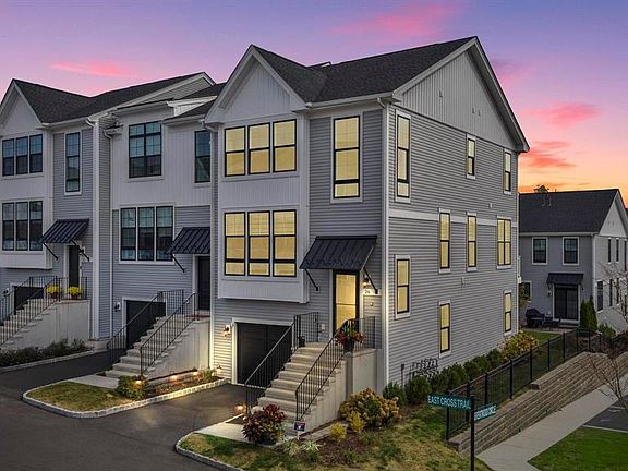 Modern & Luxurious END UNIT in the coveted Woodlands Rivington community built in 2022 by Toll Brothers. This calming & spacious home features sleek design boasting both functionality & several high end upgrades with tasteful customizations throughout that are simply breathtaking! A marvelous two story foyer greets you into a fabulously designed open living room, dining area, & chef's kitchen space with oversized island ideal for entertaining friends & family! Wonderful glass sliders out to the deck make outdoor gatherings & BBQ a breeze. Additionally, a wonderful home office or option for formal dining room is thoughtfully separated by custom glass doors for separation or integration when needed. The upper level features a Luxurious Primary Retreat w/ beautiful vaulted ceilings, stunning wall of windows, spa-like full bathroom w/ custom mirrors/vanity & upgraded glass shower, & spacious walk in closet. Completing the upper level are 2 additional spacious guest bedrooms, a lovely modern full bathroom, & laundry area. The lower level family room offers flexible uses for the space. With full sized windows throughout, this bright space can be utilized to your liking: media room, gym, guest, or recreational space! Enjoy a rarely available opportunity to own an end unit boasting elevated luxury & functionality. All this, and more. Central location near NY Line including: shopping, incredible community, a club house filled w/ amenities like- pools, tennis courts, & fitness center!