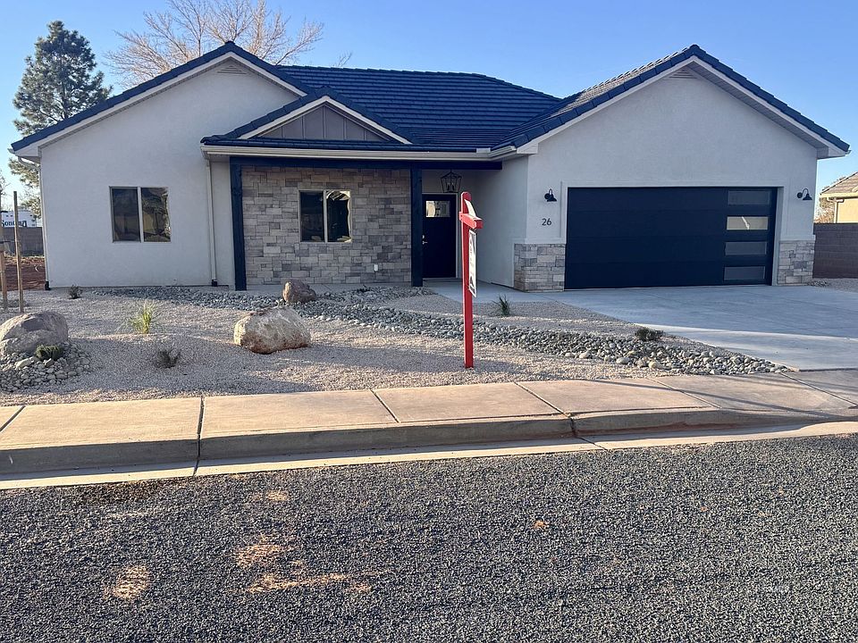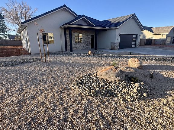 Brand New Home in Desirable Kanab Subdivision: Currently under construction and days away from completion, this thoughtfully designed home offers the perfect mix of modern comfort and functionality.Step into the spacious great room featuring vaulted ceilings, recessed lighting, and oversized sliding glass doors that flood the space with natural light. These doors open to a backyard that's ready for your personal touch, already partially enclosed with block walls on two sides-ideal for creating your dream outdoor living space.Finished xerscaped front yard.The chef-inspired kitchen includes granite countertops, a large center island, and a generous walk-in pantry, making it as practical as it is stylish.The luxurious primary suite is your personal retreat, featuring a spacious walk-in closet and functional bathroom with a step-in tiled shower, dual sink vanity with granite counters, and a thoughtfully designed layout.Outside, the home boasts a modern stucco finish accented with stone, providing both curb appeal and long-lasting durability.This home offers the best of both worlds-peaceful living just minutes from Kanab's charming downtown and close proximity to stunning natural attractions