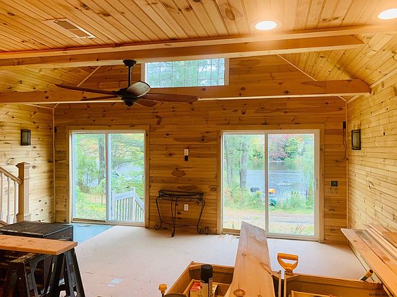 Incredible opportunity for the buyer looking to live across from a private peaceful lake in the middle of the mountains. This 3 bedroom, 2 bath home is 80 percent completed and has most of the building materials on site to complete the project. Mostly everything has been updated throughout including Electrical, Plumbing, roof, vinyl siding, kitchen, vaulted ceilings, ship lap, first floor bath, master bath is ready for tile and to be completed. This property location is prime and offers a retaining wall, newer well, double sliding glass doors, lake views from most rooms in the house. Can be completed as a year round residence or perfect family camp with huge potential for AIR BNB rental income. Property is community shared. Call for details on what needs to be completed. MAKE OFFER!!!