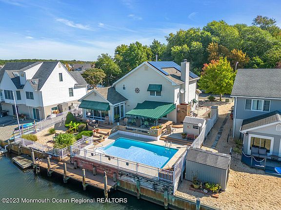 This stunning waterfront residence boasts 3 bed and 2 1/2 bath. It features an inviting in-ground pool, an outdoor shower, a delightful three-season room, and a spacious two-car garage. The property is equipped with solar panels, ensuring a low electric bill. Additionally, 68 feet of waterfront with a dock for your watercraft or boat. Whether you're seeking a full-time residence or a weekend getaway, this home is the perfect choice. this home offers ample space for comfortable living. Additionally, it is worth noting that this property did not see any Sandy damage, ensuring peace of mind.