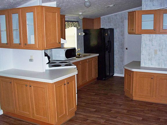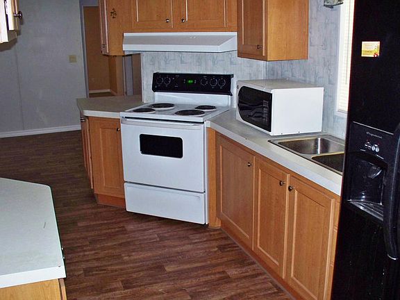 2002 Manufactured Home with 2 bedrooms, 2 baths, 1 car garage, and 1 car carport. Kitchen with wood cabinets, flat surface range, side by side refrigerator, and Microwave. Very nice home with all new carpet and vinyl. No HOA Fees to pay here, and you own the land. Front enclosed porch addition is under AC, and there is also an indoor laundry room under AC. The home even has a handicap ramp if needed.