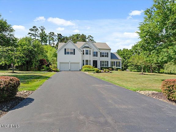 Welcome to this exquisitely maintained home nestled in the serene cul-de-sac of the Manalapan Estates neighborhood. Set on 4.34 acres, this impressive 4-bedroom, 4.5-bath Center Hall Colonial exudes elegance and comfort. The cul-de-sac lot with such a private setting is truly hard to find!