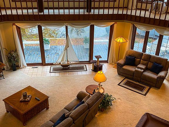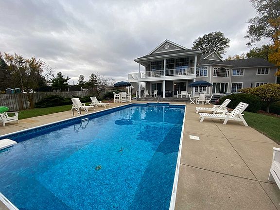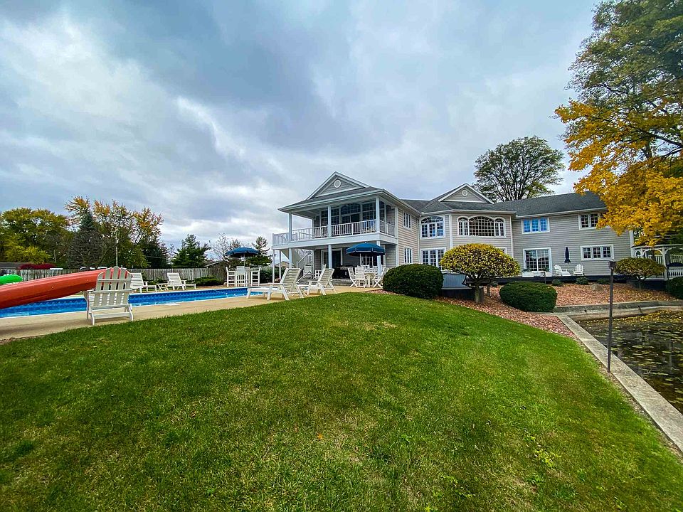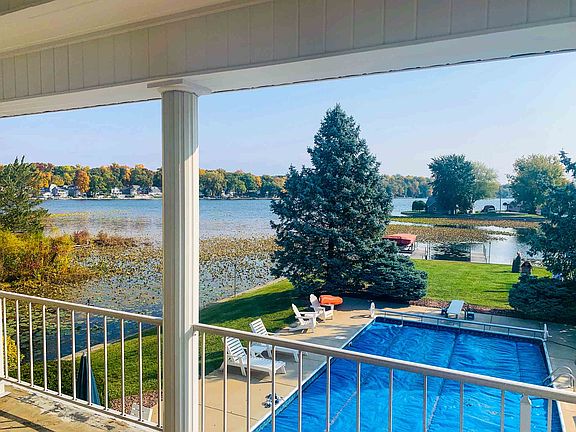 Looking for privacy, a 4 BR 3-1/2 BA majestic home, 4,848+/- finished sq ft with a lakeside in-ground pool, large yard and all on an all-sports ski lake? Look no further. Begin your day with coffee and warm muffin on the large balcony off the master suite and take in the magnificent lake and pool views, which you can also enjoy from the other 3 bedrooms, great room, kitchen, dining area and bar room. Then head down to the massive great room with a ventless gas stone fireplace and built-in cabinets, surrounded by a walk-around loft above. While there, enjoy a leisurely game of pool, or add the ping pong boards for a livelier match. Stock your large walk-in pantry with culinary delights to prepare delicious meals in your spacious kitchen with J. Miller custom cabinetry-also throughout the home. Daydream out the window facing the lake and pool while sharing your day with loved ones pulled up to the breakfast bar. The kitchen also boasts a great work island and ample counter space for preparing a small meal or enough for large holiday gatherings. Take a dip or do some laps in the wonderful pool, and then take your boat out on Dewart Lake for the day. After a great meal, head to the custom wet bar complete with a wine cooler and enjoy a glass of wine while sitting in the "cafe" area that opens to the pool, again soaking in the views. The 1st floor bedroom also opens to the pool area, boasting it's own vanity sink and W/I closet, with a convenient full bath right next door. The large laundry room is conveniently located on the 1st floor. The upper level has extensive closet space for all of your extras. End the day pampering yourself in the Master Suite. The bedroom features a tray ceiling and ceiling fan, and the bath includes a walk-in shower, jetted tub and large walk-in closet. Two more bedrooms and the den/guest room, a sitting area in the loft and another full bath with twin sinks complete the upper story. 2 Geothermal units will keep you comfortable no matter where you are, and the irrigation system will provide less work in the summer. The easily accessible 4' crawl has poured concrete walls and floor, adding even more storage space. Prepare wonderful grilled delights on your hearth-stone paved covered patio in all seasons. There is also 110 and 220 amp service at the lake, a lovely Gazebo, 10' x 16' shed w/2 doors and 2 lofts...and so much more! Don't wait on this one!
