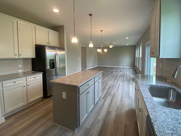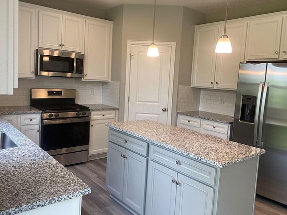 Back on market and ready now! This 4-bedroom, 2.5-bathroom, 2-story home showcases a farmhouse-style exterior with white vinyl siding and a covered front porch. Step into the foyer and you'll find steps leading to the second floor and the flex room. The dining area is adjacent to the family room and located right next to the sliding doors that lead to your back porch. The spacious kitchen comes equipped with white cabinets, stainless steel appliances, a white ceramic tile backsplash, and a walk-in pantry. Upstairs, you'll find a loft, 3 secondary bedrooms, a hall bathroom, the laundry room, and the owner's suite-featuring a vaulted ceiling, an en-suite bathroom, and a walk-in closet.