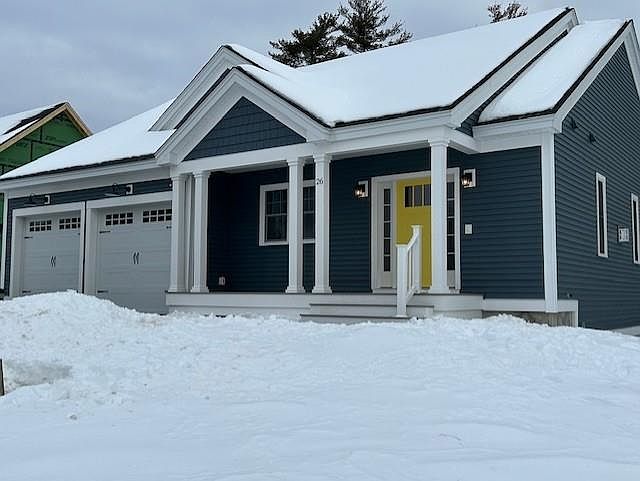 OPEN HOUSES SAT & SUN 11-2 PM.This Boysenberry Biscotti is soon to be built at The Cliffs at Evergreen, Auburn, NH’s very first 55+ community. This large 1,674 sq ft craftsman cape offers a first floor primary bedroom suite with a walk in closet and tiled shower bath plus an additional bedroom & full bath. A gas fireplace accents the living room and the kitchen and dining room offer ample extra storage in the kitchen island and pantry. Walk directly from the dining room to your private sunroom with central AC throughout for the summer months. Plus take advantage of the extra space in the first floor study. A direct access 2 car garage is included! The Clubhouse also under construction with a great hall, kitchen, large exercise room and more. Pickle ball and bocce ball plus direct access to the Rockingham Recreational Rail Trail provide ample outdoor activities. Stroll down to Massabesic Lake for picturesque views and have the option to store your RV for when life takes you on further journeys! This multi-year EPA award winning team delivers a smart home package backed by their energy star certifications and commitment to building excellence!