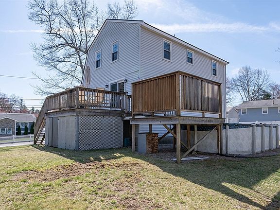 Welcome to 26 Fay Street, a beautiful Gambrel on a dead-end street within a desirable neighborhood of Wilmington. The spacious foyer welcomes you with hardwood floors flowing throughout the kitchen, dining room, and up to the 2nd level. Large bow window, new carpet, and front to back views make up the sunny living room. The eat in kitchen features custom cherry cabinets to the ceiling, updated backsplash, countertops, and updated sliding glass door leading to the expansive maintenance free deck wrapping around to access the above ground pool perfect for entertaining! The 2nd floor boasts 3 spacious bedrooms, new carpeting and large full bath. The basement provides plenty of storage and a partially finished bonus room perfect for an office, family, or playroom. The back yard includes a large Reeds Gambrel shed and fenced in yard. Its convenient location offers easy access to local shopping, parks, and major highways perfect blend of comfort and convenience. Roof is only 5 years old.