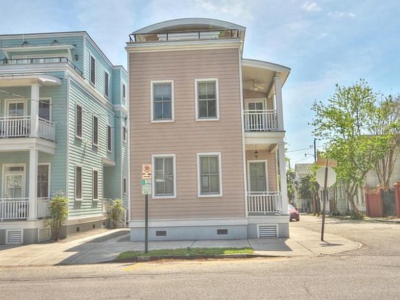 Exceptional opportunity to live in a stunning single family house in superb condition...open and sunlit with fabulous decks and adjacent parking for two cars. This spacious floor plan features Brazilian cherry floors, ten foot smooth ceilings, and a custom kitchen with maple cabinets, abundant counter space and a chef's pot rack. Located on the second floor are two nicely proportioned bedrooms, both with access to a lovely covered porch plus a full bathroom with tub/shower. The third floor boasts a "romantic" master bedroom with a curved ceiling and direct access to a comfortable terrace with lovely rooftop views of old Charleston. The master bath provides a separate bathtub, a tiled stall shower and double sinks with cabinets below. The addition of chair railing, crown molding, wrought iron cabinet hardware, custom paint, bathtub enclosure, ceiling fans throughout and 2" Plantation blinds make this Neil Stevenson designed home even more special. NO REGIME FEE, FLOOD INSURANCE REQUIRED! This is a great house THAT REQUIRES NO WORK! Located near CofC and MUSC and just two blocks from King and Cannon in the "hot" Design District! Easy to show...YOU'LL LOVE IT!