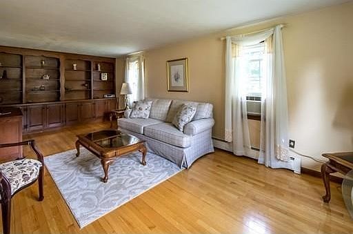 Great opportunity here shouting out to that lucky buyer...This Bright & Sunny Colonial highlights pretty curb appeal w/ really nice bones allowing for the incoming buyer to bring back this home to it's beauty and charm w/ just some cosmetic touches. First floor features generous sized living room w/ built in's & gleaming hardwood floors, eat -in kitchen w/ all appliances opening to cozy family rm w/ fireplace & built in's, formal dining rm & full bath w/ laundry area a wonderful bonus. Second floor features master bedroom and an additional three bedrooms & full bath. As per seller all hardwood floors under carpeting upstairs. Lower level offers a partially finished walk out basement. Spacious back yard for your outdoor entertainment venue will suite you well on .69 acres. Don't miss out, this home will have some beautiful resale done right! Seller states upgrades include replacement windows (2013), roof (2014) & boiler (2013). Use your vision and make an offer!