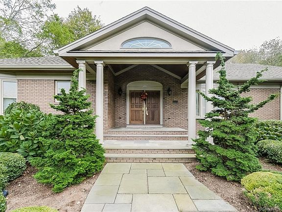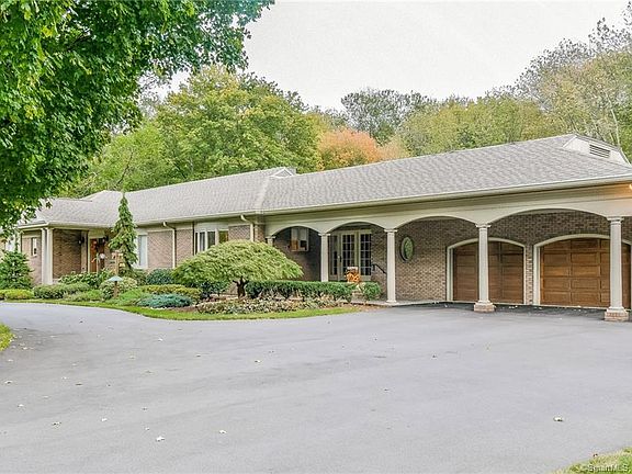 Pristine Brick Ranch centrally located in Easton only minutes to the Merritt Parkway and convenient to everything. Home was custom built using all high end finishes, custom cabinets and built-ins with loads of storage throughout the house. Main entry way foyer welcomes you as you enter to a large formal living room drenched in natural light and dining area, gas fireplace and charming crown moldings. Large Eat-In Kitchen features bow window overlooking professionally landscaped front yard, Granite counter tops and custom cabinets. Huge family room located at rear of home with cathedral ceiling and exposed beams with huge custom built entertainment center and skylights. Cozy 4 season sun room overlooks well manicured grounds leading to stone patio perfect for entertaining. 3 Bedrooms are located on other end of home features large Master Suite with walk-in closet and full bath, 3rd bedroom currently being used as office. Lower level has huge family or play room, additional fireplace and large storage areas and workshop. Wonderful opportunity to downsize to 1 level living without sacrificing square feet and living space. This is truly a must see home located just off Sport Hill Road for easy access to everything.