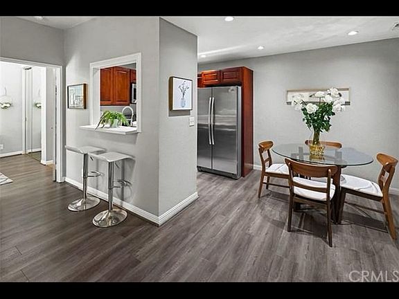 Welcome to this beautifully upgraded condo in Las Flores. This unit is in an interior location, tucked away from the street noise. Located on the ground level with no stairs! There is a private patio with an exterior storage closet. The home features modern, wood laminate flooring throughout, recessed lighting, and newer dual pane windows. The full-size kitchen features stainless steel appliances and an eat-in bar. The kitchen and living area have an open floorplan feel. Two bedrooms with two full bathrooms! Both bedrooms have ceiling fans and ample space. Laundry is located inside. Schedule your private showing today Renter responsible for gas and electric. No smoking tobacco.