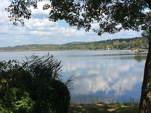 Quintessential log cabin lakefront cottage! Pristine seasonal two-bedroom cottage with charm and character. Livingroom with fireplace, enclosed sun porch / sunroom, two bedrooms, full bath. Crawl space under cottage offers storage for canoes and kayaks. Large garden shed. On double lakefront site offering stunning views of entire lake and foothills of the Berkshires. Quiet cul-de-sac location with lovely yard for family BBQ's and entertaining. In mint condition and ready for the end of summer / early Autumn enjoyment!
