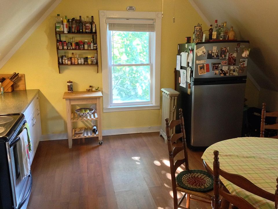 Bright and sunny 3-4 bedroom apartment (around 1500 sq. ft.) in Portland's Libbytown neighborhood. The apartment is split between the 2nd and 3rd floors, with all bedrooms on the 2nd floor, and living space, kitchen and bathroom on the 3rd floor. Located 5 blocks from Maine Medical Center, this is the perfect apartment for Doctors, Nurses, CNAs or any other MMC employee who wants walk to work and avoid the parking garage! Rent includes heat and hot water, 2 off-street parking spaces (with space for 4 during parking bans), snow removal and yard maintenance. Laundry hook-up is negotiable, as we are considering adding one (would increase rent to $2100/mo). Heat and Hot water included! Laundry hook-up is negotiable with small rent increase!