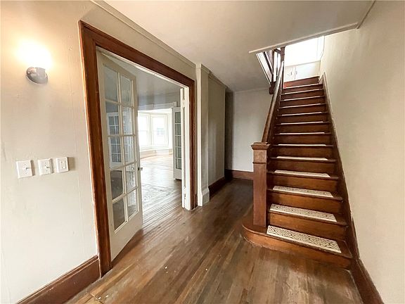 Grand & Stately Brick Home with Open Front Porch! This 1885 Masterpiece Grabs your Attention the Minute you Enter its Welcoming Foyer with showy staircase leading to second floor. You will find All Hardwood floors in this 5/6 bedroom home with Huge Formal Living Room with 9' ceilings, Non-working Fireplace with mantle, floor to ceilings Windows & Glass French Doors separating foyer and Formal Dining Room. Formal Dining Room is Very Spacious with Bay Windows & Window Seat making this room a Favorite. Smaller room off Dining room can work as an office, bedroom or playroom. Updated Kitchen with Granite Counters, Ceramic Flooring, White Cabinetry Fully Applianced with possible counter seating. 1st Floor laundry room for convenience and Nice Updated Full Bath with 2 storage closets. Second Floor Boasts a large landing with Built-in Storage cabinets and 5 Bedroom (2 are smaller in size) Full bath along with Back Stairway down to the Kitchen. Full Basement, newer hot water tank & Plenty of Room in the driveway! This home needs All hardwood floors to be refinished & Cosmetics throughout. Priced to sell to Approved Buyers. Agents please read private remarks & share with your buyers.