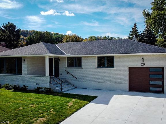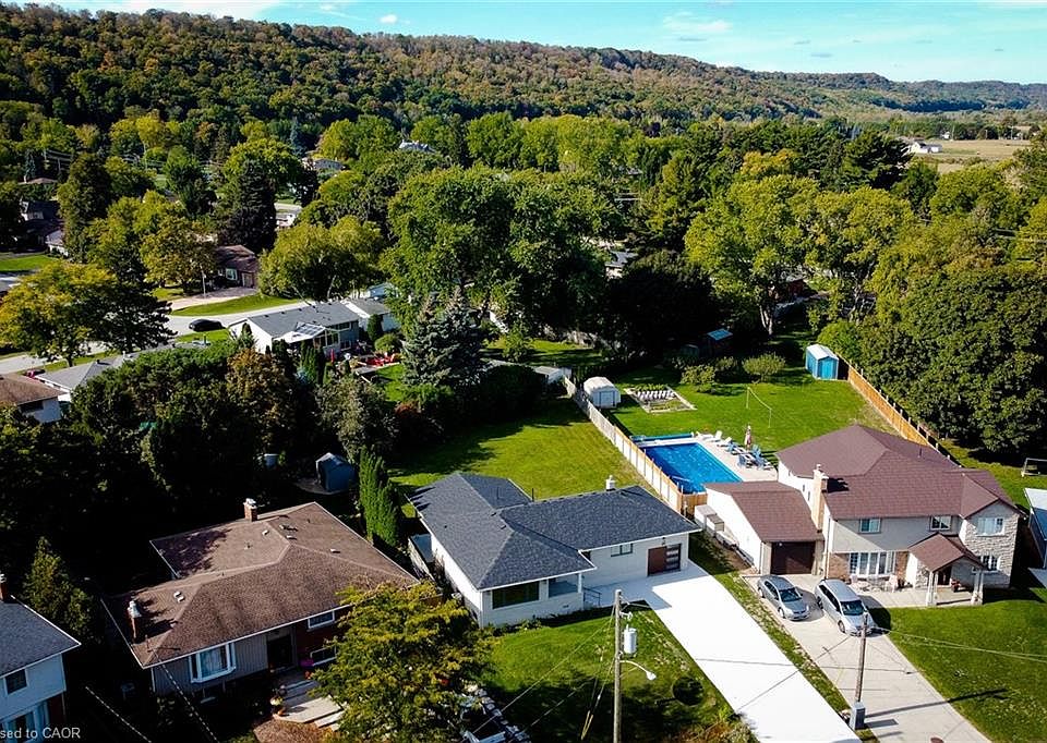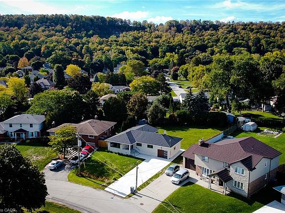 This immaculate 3-bedroom, 2-bath bungalow has been completely renovated, offering 1,255 sq. ft. of modern, carpet-free living. The open-concept main floor features bright, spacious living and dining areas with gleaming hardwood floors and oversized windows that fill the space with natural light. The stylish eat-in kitchen is perfect for any home chef, featuring stainless steel appliances, a tiled backsplash, generous cabinetry, and an island with a breakfast bar for casual dining. The contemporary 3-piece main bathroom showcases elegant finishes, while the primary suite includes custom built-in wardrobes and a spa-inspired 3-piece ensuite with a walk-in shower. The full, unfinished basement provides endless potential whether for additional living space or an in-law suite with a separate entrance already in place. Step outside to enjoy the private, covered concrete patio and low-maintenance backyard, perfect for relaxing or entertaining. Situated in a quiet, family-friendly neighborhood, this home is within walking distance to schools, parks, and the GO Station, with quick access to the mountain and QEW. With 200 amp service and exceptional upgrades throughout, this home is truly move-in ready a must-see!