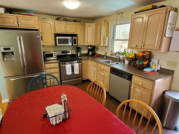 NATURE LOVER'S DREAM! This great home is nestled on a huge lot steps from Tispaquin Pond with private deeded beach rites. First floor has open floor plan with eat in kitchen with dining and open to the living room with vaulted ceiling and bay window for lots of natural light, 2 bedrooms upstairs with an updated tile bath! Head downstairs to the 3rd bedroom and family room, laundry and storage with walk out to the huge backyard! Barn with a loft for work area and storage has a new roof and electricity, perfect for so many uses! Enjoy all that nature has to offer with the 2 tier deck and lots of privacy on the just under 2 acre lot! You can fish or canoe or kayak on the pond. This home and land is perfect for the outdoor enthusiast!! NO SHOWINGS PRIOR TO THE OPEN HOUSE ON SATURDAY!