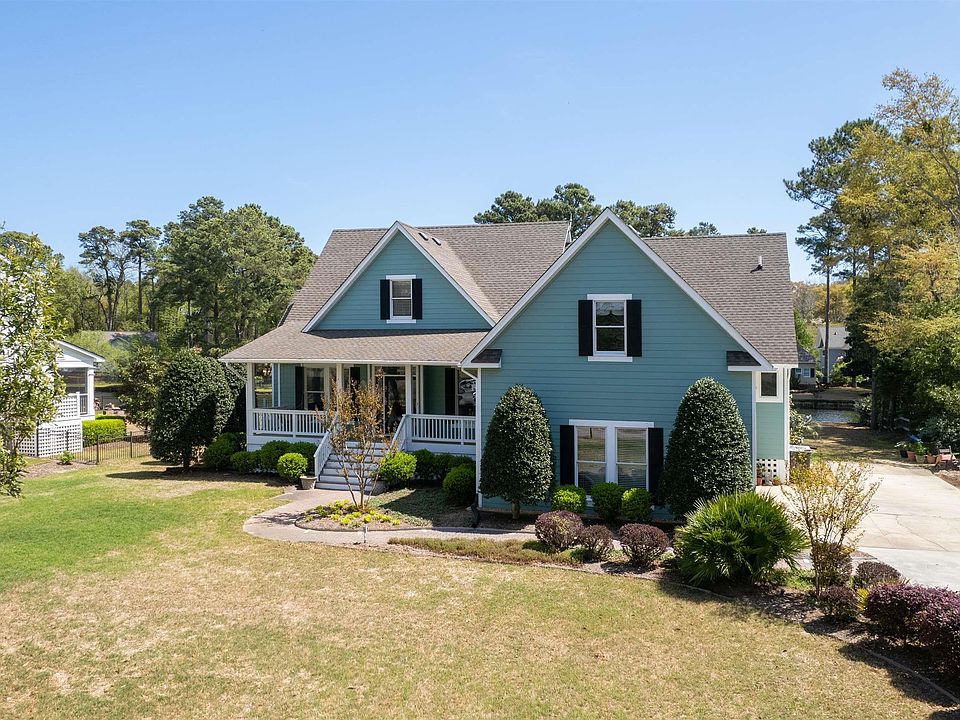 This exceptionally well-maintained home in Southern Shores overlooks the Jean Guite Creek on the front porch and beautiful pond frontage in the backyard. Ginguite Trail is the perfect location for tranquil and convenient living. Custom-built home with gorgeous landscaping, this home is a must-see and will not last long. Double garage, massive storage area, and a tremendous potential for expansion if desired. Built with Anderson doors and windows, the home was built with quality in mind and located very close to all the local amenities for year-round living.