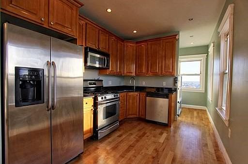 Gorgeous two bedroom condo with spectacular views of the Boston Skyline, airport, and ocean! This apartment has so much to offer: 2 CAR PARKING, a two minute walk to the blue line (Orient Heights) station, Central A/C, a Jacuzzi in the MASTER bathroom, and washer & dryer units in the apartment. The kitchen features stainless steel appliances, granite counter tops, and an open concept layout that is excellent for entertaining. This spacious two bedroom features plenty of storage space within the apartment. It also features a dining room that can be used perfectly as an OFFICE or BONUS ROOM. The second bedroom has a good sized closet and a sliding door that leads to a large deck that offers views the City of Boston, the Airport, and offers beautiful OCEAN VIEWS. This apartment is a commuter's dream only steps away from the Blue line and minutes away from the City.