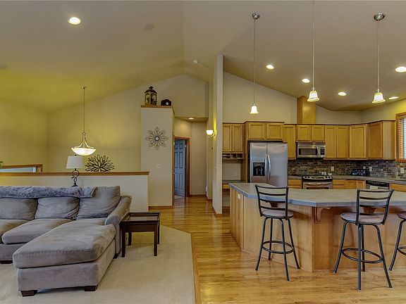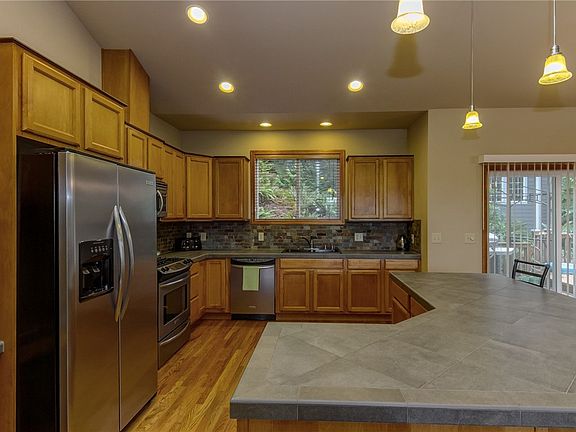 Prime Gate 2 location with beautiful territorial views! This lovely home features 3 beds, 2.5 bathrooms, vaulted ceilings, open floor plan, a HUGE kitchen with tons of cabinets, tile counters, wood floors, built-in surround sound speakers, and a cozy gas fireplace. Picture windows throughout allow natural light all year long. This is one of the sunniest location in Sudden Valley! This is a must see home!