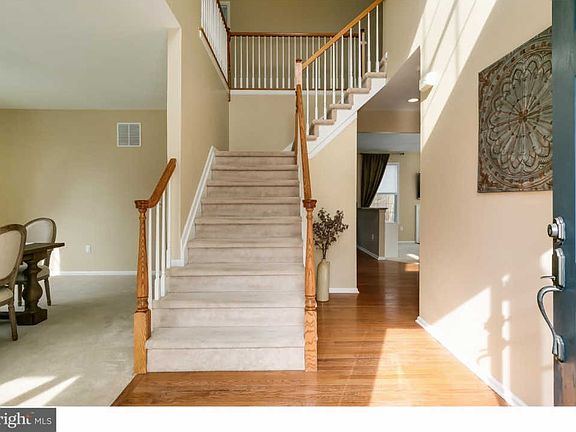 Proudly Presenting this WELL-MAINTAINED, 3 Bedroom, 2.5 Bath " Pottery Barn" Inspired Colonial that backs up to trees in the desirable "Grande at Rancocas Creek"! Upon entry, you are greeted with a 2-Story foyer that's boasting hardwood flooring leading into the Kitchen. The Living and Dining Rooms were made into one large Dining area that is great for entertaining and has neutral carpeting and paint with lots of natural sunlight pouring in. The eat-in Kitchen has oak wood cabinetry with granite countertops, a center island, recessed lighting, a full stainless steel appliance package, and sliders leading out to a Deck that you can enjoy during the warmer season. Adjacent is the Family Room that is nice and open and offers neutral carpeting with a gas fireplace for extra warmth during the Winter. Upstairs, the Master Suite, is very spacious with a walk-in closet and full Bath. The Bathroom features tile flooring, double oak wood vanity, a soaker tub, and stall shower. There are an additional 2 Bedrooms, both with ample closet space along with a full Bath. There is a full 39x29 un-finished Basement that could be finished off for the extra space you are looking for. It's already insulated! The backyard features a vinyl privacy fence. Additional features include: wine fridge built into island, Pottery Barn chandelier in DR, storage shed under deck, LED recessed lighting throughout house, and FR TV wall mount with wiring in the wall for a wire free look. Conveniently located near Rt. 130, I-295, shopping, and schools. Only approx. 20 mins from Philadelphia. Make your appointment today!