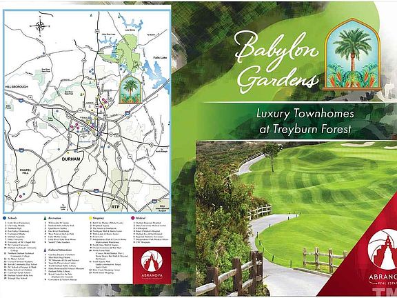 New construction townhouse opportunity in prestigious Treyburn, named "Best Neighborhood in Durham" by Durham Magazine. Features include hardwood flooring, 4" crown molding & 9' ceilings on 1st floor. Frigidaire SS appliances, granite counters, 42" cabinets, Moen faucets, ceramic tile backsplash in kitchen. 1st floor master suite w/ walk-in closet, master bath w/ dual undermount sinks, ceramic tile floor & shower surround. Short drive to RTP, RDU, Little River, Falls Lake, Duke & downtown Durham.