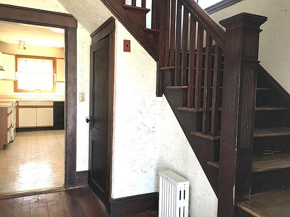 Affordable single family under $200,000; not a short sale or bank owned. This diamond in the rough requires updating. Property being sold "as-is" condition without repairs, warranties, nor representations by Seller-- buyer to perform all due diligence. Cozy entry leads to good size sunny kitchen, walk-out bow window in dining room, and charming living room. Possible 4th bedroom on the first floor. Hardwood floors throughout first and second floors. Detailed staircase takes you to 3 bedrooms and full bath. Walk up attic for storage or finishing touches. Wash/dryer hookups in the basement. Shed in the backyard for extra storage. Spacious yard for landscaping and relaxing. Great opportunity for an investor or someone to customize and update. Don't miss out on low interest rates, cheaper to buy than rent.