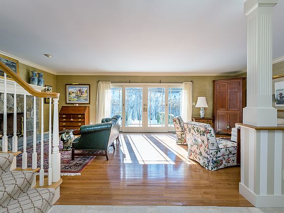 The house at green hill is perfectly sited to take advantage of the expansive North West views. Sitting at the end of a private road this modern country home has the perfect layout for relaxed enjoyment.The main entry features tiled floors in the foyer which opens to a large living room with a stone fireplace, wood floors, french doors that open to an English garden. The hall leads you to a large bright kitchen with granite counter tops and a breakfast bar, a dining room and sitting area. Large sliding doors open to a screened porch with exterior access, the dining room and porch are situated to take advantage of the views and have wood floors, high ceilings and an open plan.On the opposite side of the house is a large den with built-in shelving, private office and wet bar that are full of wide large windows to take advantage of the view. Crown molding and painted paneling give an added warmth and character.The main level also features a half bath and laundry room. The master suite has a nice private view and the bath has with double sinks, large walk in shower and walk in closet.The upper level features two generous bedrooms and full bath.This home has been carefully maintained since it has been built and features a full basement plus 4-bedroom septic which could lead to expansion.Private yet minutes away from the village center of Kent, Mohawk Ski Mountain, Lakes and trails.The perfect country escape found at Green Hill Kent CT