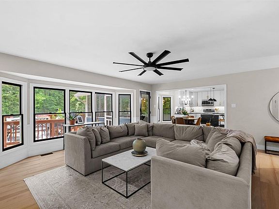 Modern meets cozy cottage retreat with this fully renovated stunner on over an acre of land! Tucked away in a cul-de-sac & backing to woods, enjoy the tranquil setting of nature & wildlife from the expansive, updated deck & screened in porch. The spacious main level boasts a convenient, open layout w/ plenty of natural light through the vibrant array of windows in the living room & beautiful built-in bookshelves on either side of the wood burning fireplace. Beautifully updated kitchen w/ all new stainless steel appliances, leathered granite countertops and 42” cabinets. Laundry, formal dining room & sitting room/office also featured on main level. Entering the 2nd level—the grandiose vaulted ceilings in the primary bedroom and bath w/ soaking tub, skylight & walk-in closet will leave you speechless. Additional 3 bedrooms & full bath on 2nd level. Cherry on top? Newly finished basement for movies, playing and/or entertaining w/ separate storage area. Welcome home to your new oasis!