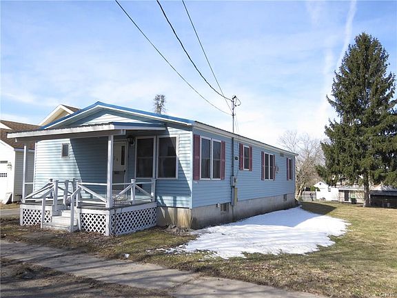 One floor living in the village. Manufactured home features three bedrooms, two baths, a spacious living room with vaulted ceiling, kitchen and dining area. Comes with all appliances, front porch, one car detached garage with power, private back deck and yard. Home has a newer roof and replacement windows. A great retirement home or for just starting out.