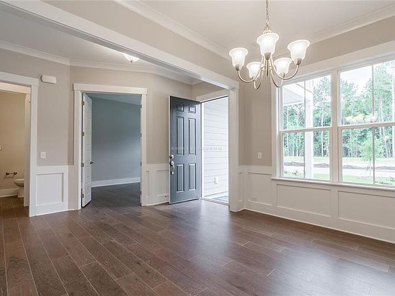 Two story Wingate model with gorgeous double front porch, includes four bedrooms and 2.5 baths. Offering a large gourmet kitchen with quartz counter tops and butler's pantry, this home features a private first floor owner's suite with tray ceiling, large walk-in tiled shower with garden tub. This plan also includes 5" wood flooring in main living areas, 4 foot garage extension for ample storage space, and screened lanai overlooking nature preserve.