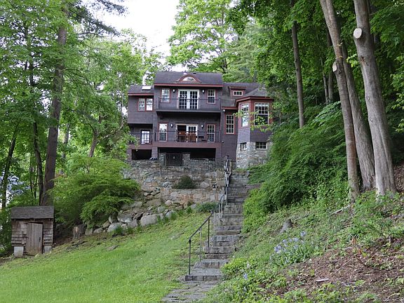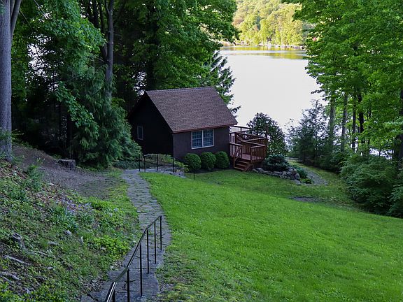 Make this your Private Retreat! This 4500 sq ft Direct Waterfront Home in Ferris Estates could be yours for all or part of Summer '25. This spectacular Arts and Crafts Candlewood Lake Home boasts 4 bedrooms and 3 Bathrooms, multiple levels of decks, and stone terraces with endless lake views. The Gourmet Kitchen, Formal Dining room, and Inviting Living Room with cozy fireplace and space to spread out while enjoying the quiet life of lake living. Upper levels house the Primary Bedroom Suite with a sitting area, 2 other comfy bedrooms, and a full bath. The lower level has a Billards room, Media Room, and an additional Bedroom, all with direct access to the main terrace and outdoor amenities. The stone path leads down to the Lakeside Cottage, huge deck, the dock, and direct access to 450 ft of the Lake. The home is fully furnished. Credit check and security deposit required.