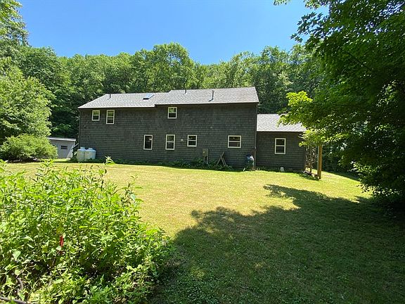 A great location for owner occupied and/or rental use. Just over the Leverett line off Route 63, with easy access to Amherst and I-91. The first unit has a light, open living/dining/kitchen space with wood and tile flooring, a wood stove hookup and a sliding glass door to the beautiful yard. Also on the first floor are a large bedroom with wood floor and large closet, and a bathroom. Upstairs are two more bedrooms, both with wood floors, another bathroom and a laundry closet. The second unit has an office with separate entrance, a living room or bedroom and a utility room. Upstairs are the kitchen, bathroom and a large room that can function as the living room or bedroom. The upstairs rooms have cathedral ceilings and multiple windows and skylights bringing in great light. The roof in newer. The acre lot provides plenty of room for parking, garden space and a lovely lawn and nice landscaping. A large shed offers plentiful storage. Conservation land is just across the street.