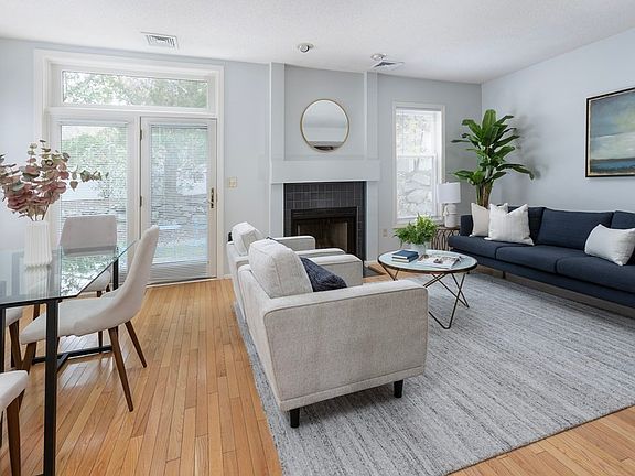 Move right in to this bright, updated townhome at Hammond Place. This well-maintained, modern two bedroom, one and one half bath condominium spans 1,189 square feet on two floors, and includes a newly renovated kitchen with white cabinetry and modern open shelving. Get comfy by the wood burning fireplace in the living/dining area, replete with french doors to private patio overlooking manicured grounds. Upstairs, the primary bedroom features vaulted ceilings, ample closet space and direct access to the full bathroom. The second bedroom features a walk-in closet. Pull-down access to unfinished attic, with potential to finish. Wood floors throughout, tiled foyer, first floor laundry plus several closets for storage. The 2 exclusive use parking spaces are just outside the welcoming front porch and visitor parking nearby. Solid, professionally managed association with high owner occupancy and robust reserves. Close to shops, nature trails and major routes.