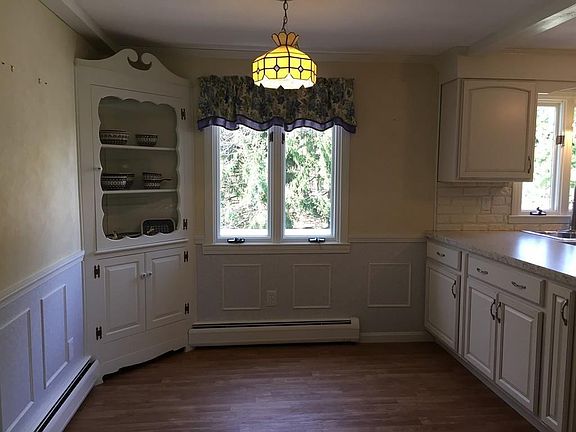 This meticulously maintained one owner ranch has fabulous curb appeal and sits on over 1/2 acre of land which abuts conservation land. There are many great qualities starting with the Eat in Kitchen that was updated with new cabinets, countertops and flooring approximately 5 years ago (APO) newer stainless steel appliances will remain for Buyer's enjoyment. Newer Master Suite has a dressing room with double vanity, heated tile floor, tons of storage and closet space, private shower and toilet area, laundry, vaulted ceiling and skylight. Living room has a gas log fireplace with wall to wall carpet. Hardwood under carpeting throughout. Efficient gas heat with Buderus boiler and hot water tank. Full daylight basement with fireplace offers easy potential for additional living space. Over-sized Garage, newer doors with separate workshop room with great storage area. Enjoy all the nature in your private backyard from the large screened in porch, plenty of parking and shed, prof. landscaping.