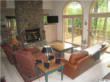 This lovely furnished three bedroom home plus bonus room is a wonderful second home getaway in a quiet and secluded section of Wintergreen but not far from amenities.Kitchen opens to dining area and a dramatic floor to ceiling stone fireplace in the family room. Wood floors, large decks and custom arched windows make this a great home for a family to enjoy. Level driveway, seasonal views, freshly painted exterior and decks. The bonus room can become a 4th bedroom or an office. Walk to HOA pool.