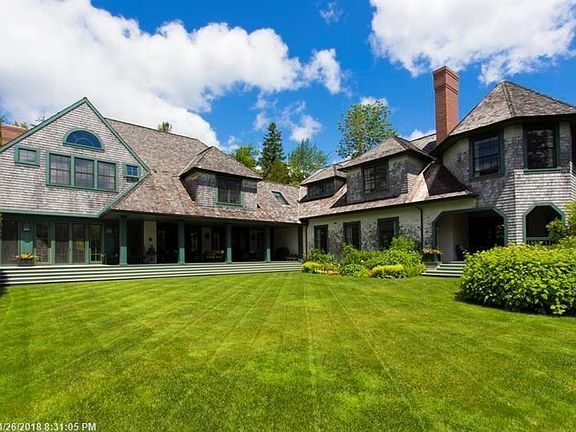 This shingle-style cottage offers many options for family and friends. With 8,100 +/-sft, Harbor Ledge welcomes you year-round with an exquisite house design by Keith Kroeger, and landscape design by Dennis Bracale. The main house and attached guest cottage offer their own kitchens that are a chef's dream, large dining and living room areas, high ceilings, gorgeous wood flooring and trim, with ample space for formal entertaining, coupled with a room layout that is cozy and warm for small family gatherings. There are 6 bedrooms in main house and 5 in the attached guest cottage, both with first floor bedrooms and full baths. Resting on .99 acres +/-of gardens and lawn for hours of play, in the village of Northeast Harbor, and close to the marina and Acadia, this is a versatile and wonderful residence for all seasons.