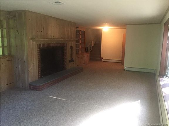 Short term rental. 3-6 months then month to month after that. Huge split level style home at the end of a cul-de-sac in great location. Easy access to grocery shopping, town hall, library, restaurants, highways, etc..Large living room with carpet, built in book shelves/cabinets and large fireplace, formal dining room with carpet, eat-in country kitchen. 3 bedrooms with hardwood floors and ceiling fans and 1 full bath on the upper level. Large carpeted family room, laundry room with washer dryer and half bath on the first tier of the lower level. On the second tier down of the lower level is a bonus room with fireplace which has direct access to the 2 car garage. Tenant pays all utilities, lawn care and snow removal. 1 month security, credit check, references.